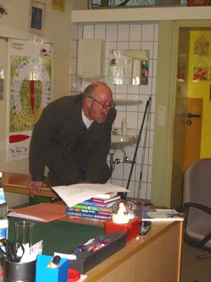 Heute kam Carsten, hat sein Equipment aufgebaut, zwei Kondensatormikrofone, Vorverstärker, einen Dat-Recorder, gegen 9:30 waren wir klar, haben eine Sprechprobe gemacht und dann Szene für Szene eingesprochen. Gegen 12:00 war alles fertig, alle waren stolz und glücklich, nächste Woche werden Carsten und ich das Hörspiel bearbeiten, mastern, auf CD brennen und dann werde ich noch einmal nach Dickenberg fahren und das Hörspiel feierlich überreichen.