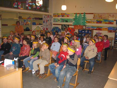 Ich spüre gleich, dass es unruhig werden wird und versuche, dem mit ein paar Raketen gegenzusteuern, singe ein Lied, baue mit den Kindern das imaginierte Tipi auf und starte die Lesung. Rektorin, Journalist und fotografierender Fotograf stehen derweil in der Ecke und reden lauthals miteinander.