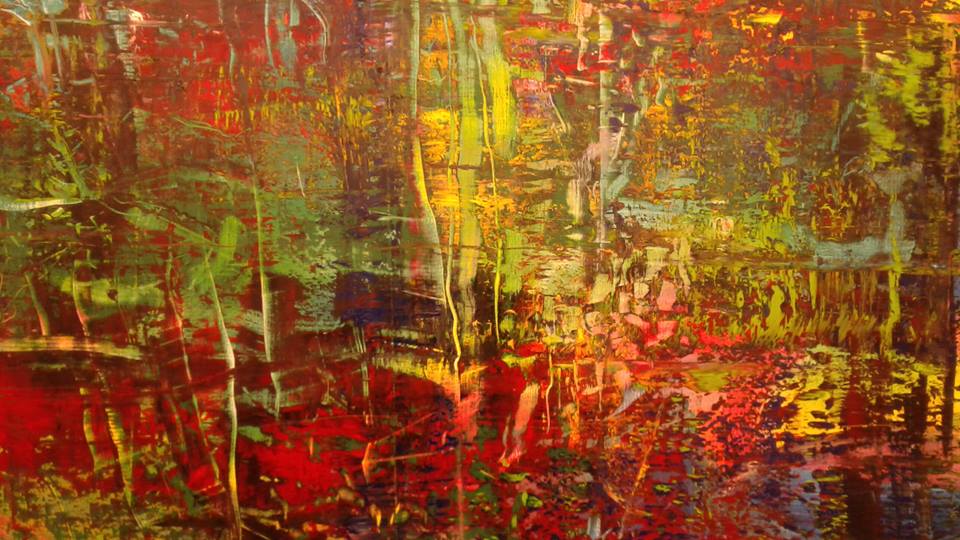 Wieder fast zehn Jahre später, diesmal mit meiner Freundin in Köln, sah ich Richter zum dritten Mal. Abstrakte Bilder des letzten Jahres. Ohne Titel, einige Großformate, viele kleine. Und jetzt wird es spannend, denn als ich in den Raum kam, war ich enttäuscht. Im einer Doku hatte ihn bei der Arbeit gesehen, wir beide mögen den Zufall, aber das war mir zu bunt. Meine Freundin ging herum. Sie will immer alles sehen, und glaubt man könne alles sehen. Ich glaube das nicht und blieb vor diesem Bild hängen.