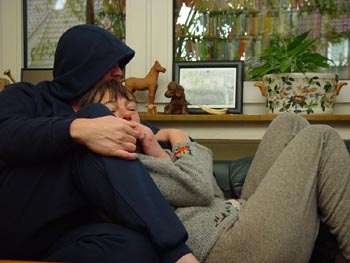 Die Ex hat diese Abholzeremonie so organisiert, dass weder Ex-Mann noch neue Frau ihre Türschwelle übertreten dürfen. Sie stehen dort also ganz gleich bei welchem Wetter und müssen warten, bis die Töchter ihre Siebensachen beisammen haben. Dann treten die beiden Mädchen über die Schwelle und werden von der neuen Frau überschwänglich begrüßt.