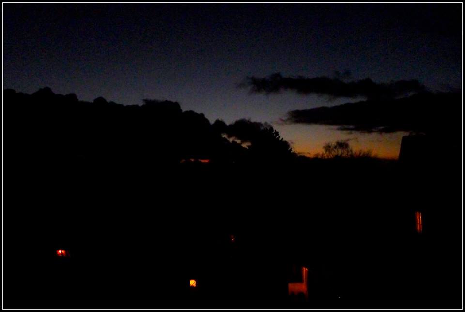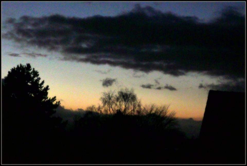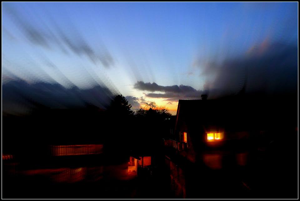 Der Anruf kam gegen halb sechs. Ob ich das gesehen hätte? Ich sagte nein, was denn? Diesen Horizont, sagte sie. Ich sagte, da stehen Häuser vor. Die musst du wegschieben, sagte sie. Ich sagte, ich würde mal vor die Tür gehen, vielleicht wäre da etwas zu machen. Ich hoffte auf die Carossastraße als Schneise in den westlichen Himmel, schraubte die Leica aufs Stativ, ging hinaus, aber auch da gab es nicht das dramatische Bild, das ich ahnen, aber nicht sehen konnte. Ich rannte auf den Dachboden, öffnete die Dachluke, und da war er, der Himmel.
