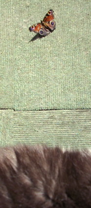 Es schlug sechs. Ten Humberg, Meiers Katze (Mitus Mutter) war mit einem Satz überm Zaun und strich um seine Beine. Meier beugte sich herab und kraulte sie hinterm Ohr. Ten Humberg ließ ihn gewähren, aber dann sprang sie schräg, so, als wolle ihr Hinterteil mit steil aufgerichtetem Schwanz sie überholen, davon und verschwand unter den Fichten.