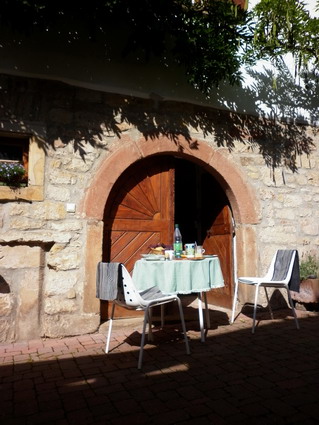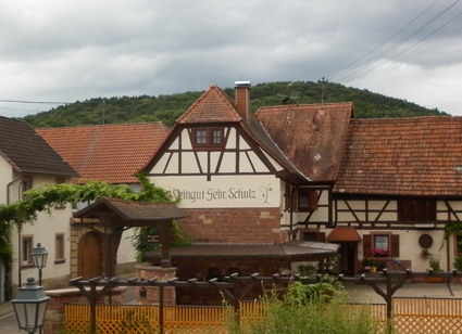 Also fahren wir weiter. Es regnet. Es regnet zuweilen sehr heftig, kurz hinter der Mosel gießt es, aber als wir gegen 19 Uhr Oberotterbach erreichen, ist es mild. Wir richten uns ein, wir drehen eine Dorfrunde, doch davon später.