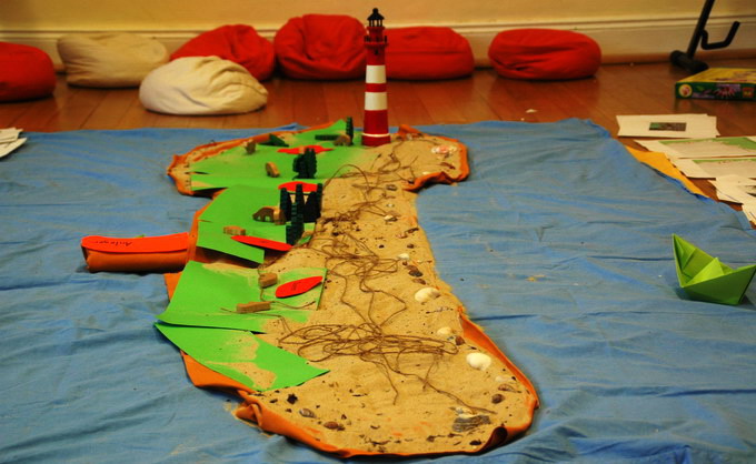 Wären nicht die gewesen, die lieber Mist machen und stören, es hätte schön werden können heute mit unserer Einheit zur Entstehung der friesischen Inseln. Erst habe ich die Geschichte gelesen, dann haben D. und ich das Land, das heute die Nordsee ist und vor Urzeiten trocken lag, das Doggerland, als großes, sandfarbenes Tuch auf den Boden gelegt, haben es mit Menschen, Pflanzen und Tieren besiedelt, das Eis nördlich mit weißen Tüchern und die Flüsse mit blauen Seilen dargestellt, haben die Flut kommen lassen als blaues Tuch, das alles bedeckt, die Nordsee, und darauf haben wir mit einem Seil die Umrisse der Insel Ameland gelegt. Aber die, über die ich nicht sprechen darf, haben Unruhe verbreitet. Es reicht, wenn einer die Gruppe stört, zwei oder drei sind machen es anstrengend, sehr anstrengend. Dennoch, ein guter Tag für einen, der kein Lehrer sein kann und es dennoch ist.