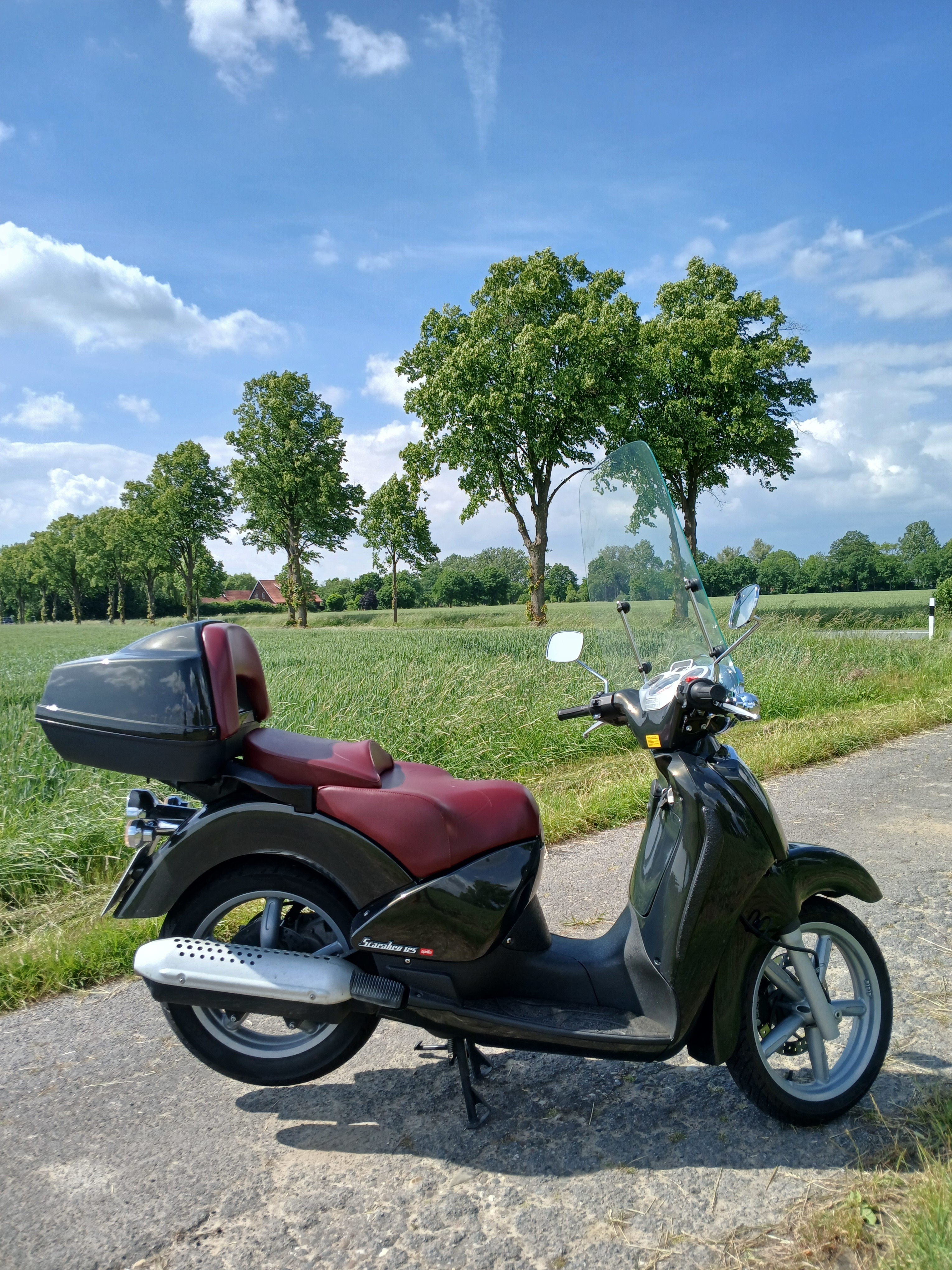Nachdem ich den Tankgeber der alten Aprilia aus- und in den neuen eingebaut hatte, ohne dass Blut geflossen war, wie meist Blut fließt, wenn ich mit Werkzeugen umgehe, wuchs meine Zuversicht als Hobbyschrauber. Deshalb habe ich gestern den Seitenständer der alten Aprilia abgebaut und heute versucht, ihn an die neue zu schrauben. Endlich ein paar Tropfen Blut. Nach mehrmaligen Versuchen habe ich es aber bleiben lassen. So, wie er bei der alten angebaut war, funktionierte er an der neuen nicht. Die Schraube müsste eigentlich von innen gesetzt werden, ihr Kopf saß aber außen. Um die Schraube innen einzusetzen, müsste ich unterm Roller liegen, aber da ist nicht genügend Platz. Ich werde U. fragen. Die Tage fahre ich hin und erkläre ihm das Problem. Er wird lachen, er wird sagen, im Ansatz nicht schlecht, er wird den Roller aufbocken und mit das Problem in fünf Minuten erledigen.