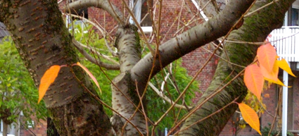Hier sind sie, die letzten acht Blätter der japanischen Kirsche.