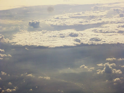 Dann hinaus in das Frühmorgenwien, es regnet, Menschen sind unterwegs, er trifft die Verlegerin, sie sprechen miteinander und die Aussichten sind gut. Und dann macht sich der Autor auf den Heimweg. Checkt, wie von Edi Stoiber empfohlen, in Wien Mitte ein, erhält seine Boarding Card, ist nach einer Viertelstunde am Flughafen, trinkt noch eine Melange, ist überhaupt nicht mehr aufgeregt und wundert sich eigentlich nur noch, dass das Flugzeug nach Erreichen der Startposition nicht anhält, wie er das von früheren Flügen in Erinnerung hat, anhält, die Motoren hochfährt, einen letzten Check macht, um dann davon zu schießen und abzuheben, nein, dieses Flugzeug biegt in die Runway oder wie immer die heißt, biegt ein und gibt schon in der Kurve Gas, so dass der Autor noch denkt, mein lieber Mann, der Pilot hat es aber eilig, und dann ist man auch schon fast in der Luft, in den Wolken, es dauert, bis die Sonne durchbricht, man ist über Nürnberg, irgendwann kreuzt ein Jumbo den Weg und noch etwas später folgt ihnen ein graues AWACs Flugzeug und dann ist man zuhause, auch diesmal fast 40 Minuten zu früh.Hier ein Foto von Nürnberg.