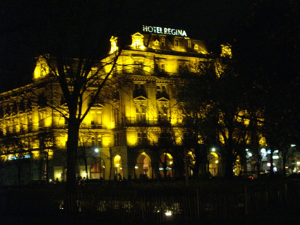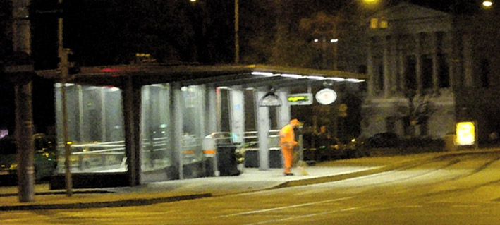 Eine halbe Stunde folgt der Autor der imperialen Pracht der Avenuen, durchquert das Museumsquartier, hier steht jemand auf einem Sockel, dort ist eine Fassade in hellem Licht.