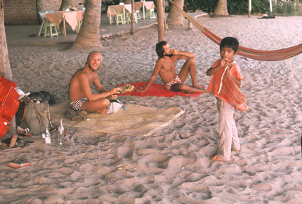 Der Gastgeber und seine Frau haben fünf Kinder. Alle schienen wohl geraten. Alle waren höflich. Alle ruhten in Gott, jedenfalls schwang Gott immer mit, wenn geredet wurde. Ich dachte, so ist das also, so funktioniert eine gottesfürchtige, besser gestellte Familie....Dann war ich nicht mehr neidisch, denn ich begriff, dass hier mit großem Aufwand eine Fassade gewahrt wurde. Was dahinter war, konnte ich nicht erkennen. Davor aber war man höflich. Glaubhaft freundlich. Tolerant. Mir machte es zunehmend Spaß, zu spielen. Es zeigte sich nämlich, dass eine beträchtliche Zahl der Anwesenden gut fanden, was wir da von uns gaben. Vor allem Smoke on the water und das Medley aus Paint it black und Brennend heißer Wüstensand kamen sehr gut an. Erstaunlich, oder? Jemand bat mich um meine Karte. Er sei aus W. und wolle sich bemühen, uns dorthin einzuladen. Wir spielten eine so schöne Musik.