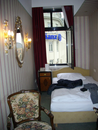 Bisschen eng, aber es ist ja nur für eine Nacht, allerdings eine unruhige Nacht. Wieso und warum? Vielleicht, weil er am Morgen noch einen Verleger trifft, eine Verlegerin diesmal, und schon wieder fliegen muss? Ja. Vielleicht. Jedenfalls ist er zerschlagen am Morgen, hat alle Stunde einmal auf die Uhr geschaut, hockt schon um kurz nach sieben beim Frühstück, sieht die kleine Japanerin wieder, der er gestern abend, als er noch auf die Schnelle eine Suppe aß und ein Nachtbier trank, einen guten Appetit gewünscht hat, wieder sitzt sie allein, vor sich den Reiseführer, heute Wien, denkt er, und morgen?