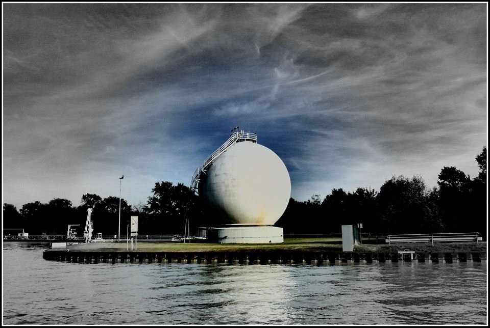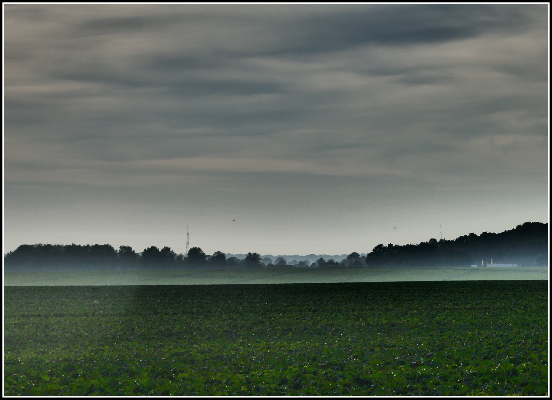 Das, was ich für die Umgehung hielt, die gebaut und genutzt werden soll, wenn der Dortmund Ems Kanal bei Gelmer verbreitert und der alte Kanalübergang abgerissen wird, ist der neue Kanal, das habe ich heute begriffen. In den letzten Jahren bin ich mehrfach dort gewesen, um zu sehen, wie die Arbeiten voran gingen. Der neue, breitere Kanal ist schon mit Spundwänden markiert, die Brückenwanne für den Übergang über die Ems liegt montiert am Südufer. Am anderen Ufer warten Fundamente. Ich schätze, sie werden die Brückenwanne auf die andere Seite schieben, wie, das würde ich gern sehen. Ich hatte meine Panasonic dabei (die ich noch längst nicht beherrsche), aber Baustellen kann ich nicht fotografieren. Er habe zu großen Respekt vor den Ingenieuren, die das alles ausrechnen und auf den Millimeter planen können. Ich plane nicht einmal die nächste Stunde. Ich bin gegen jeden Plan. Pläne verstoßen gegen das Lebensprinzip. Ich will, dass alles jederzeit passiert. Die Sonne schien, leichter Dunst, über Wiesen und zwischen Bäumen fast Nebel. Ich habe Kühe fotografiert, ein Umspannwerk, einen Esel, einen dicken Mann mit dickem Schäferhund, die Rieselfelder, Gänse im Flug, einen Öltank am Hafen in Gelmer und schließlich die Autobahnraststätte Münster Süd. Jedes Mal sieht man, wie schön die Welt ist.