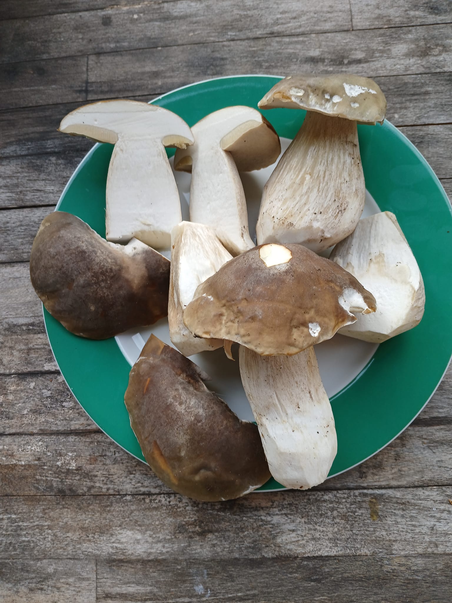 Als wir am 4.10.23 in der Haard waren, fanden die Pilze uns. Sie standen am Weg. Nach zehn Minuten war unsere Tasche voll. Am 4.10.24 fanden wir nicht einmal die Stelle am Weg. Wir fuhren einmal hoch und runter, wir waren uns einig, dass sie irgendwo zwischen Weganfang und Windrad liegen müsse, weit vor dem Rad allerdings, denn an das erinnerten wir uns nicht. Wir kreuzten weiter die Haard, hielten Ausschau nach Stellen ohne Unterholz, Eichen, Buchen, Moos und Kiefern, überall nur Kartoffelboviste. Und dann stand ein ausgewachsener, prächtiger Steinpilz vor mir. Hier! rief ich, Martina, komm schnell! Sie kam. Wir fanden ihn von Schnecken zerfressen. Abends habe ich mit der Tanzmaus im Hot Jazz zur Livemusik von Renau Gardica-Fons Tango getanzt. Auch aufs Basssolo. So geht Tango, fanden wir. Den Samstag schwer ermüdet vertrödelt. Gleich aber Tango auf dem Leonardo Campus. Und morgen checken wir die Davert.